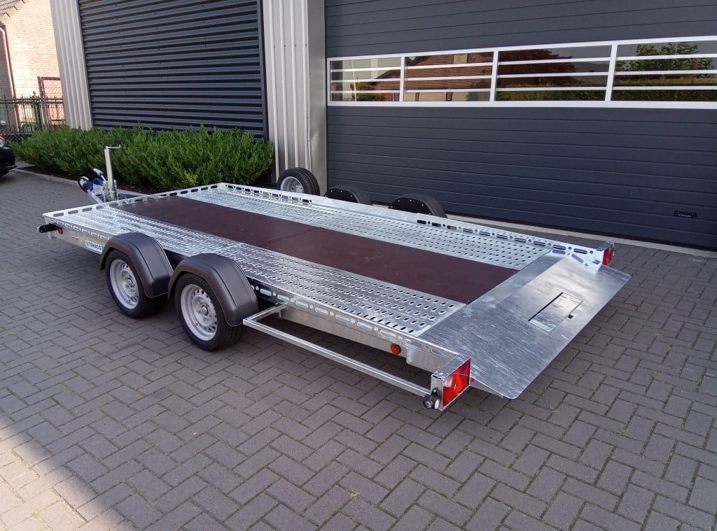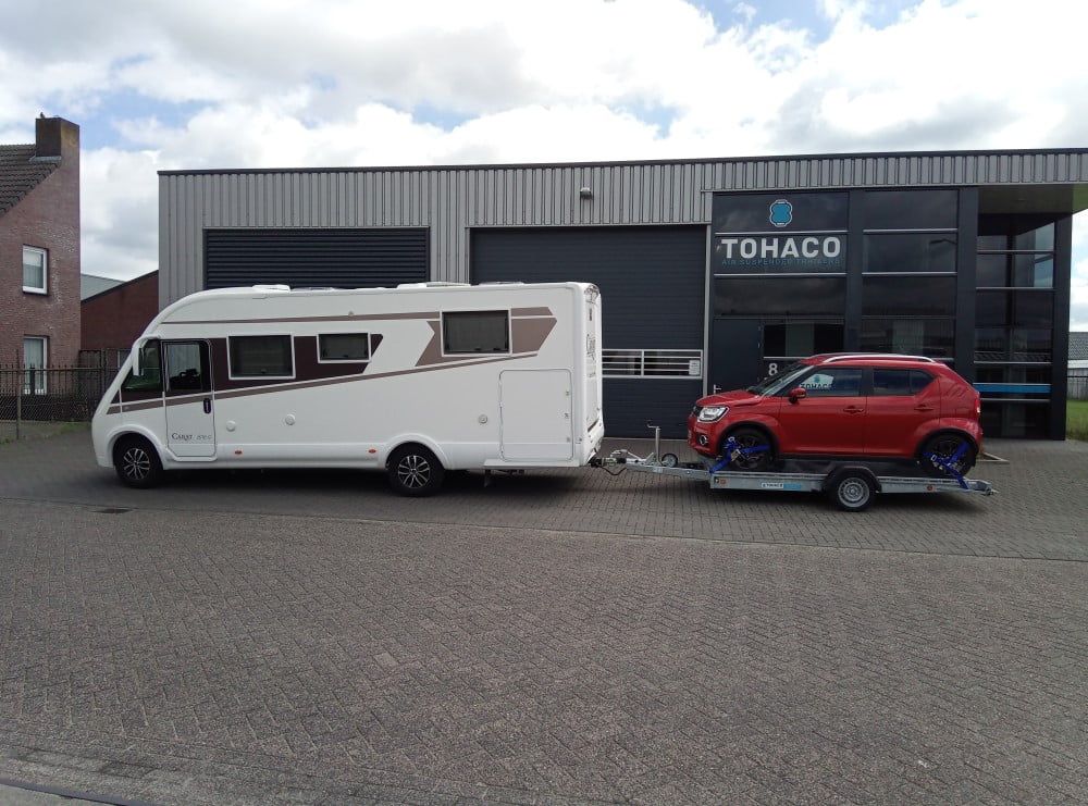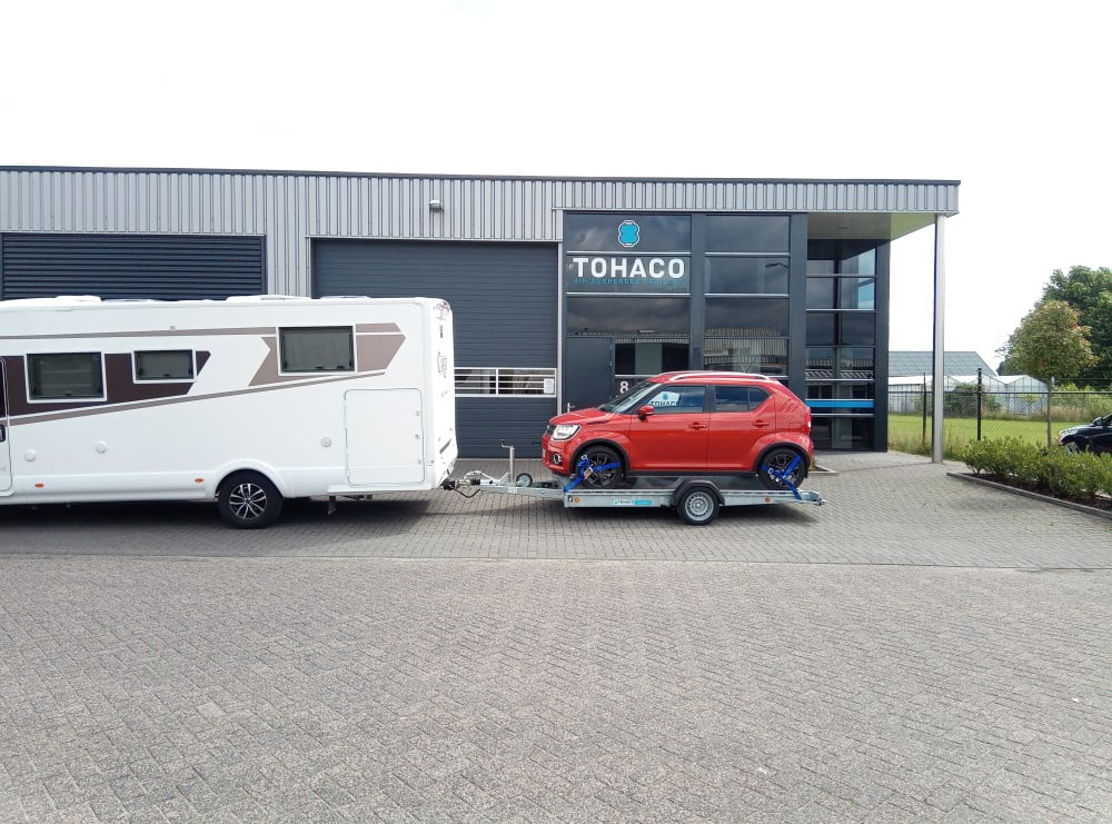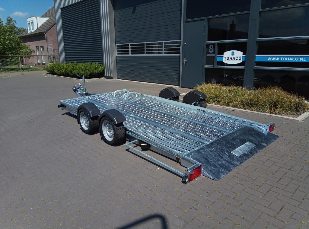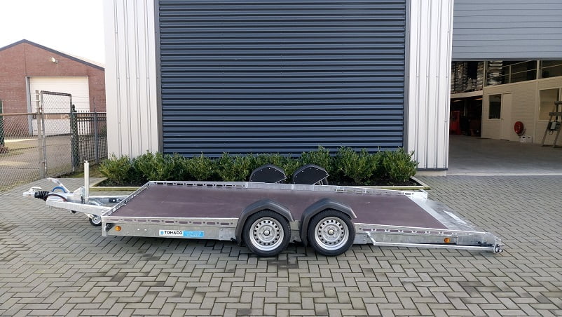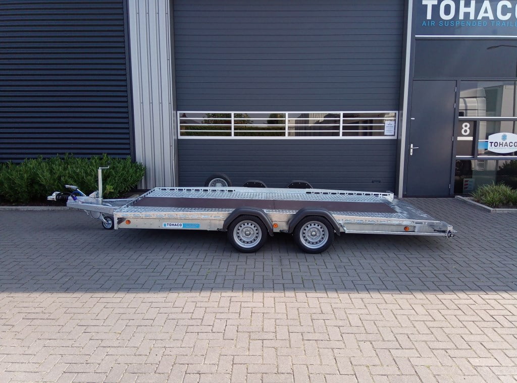Der Tohaco Autotransporter ist als einachsiger oder zweiachsiger Anhänger erhältlich. Die maximale Ladebreite des Autotransporters beträgt 200 cm! Sie brauchen keine Rampen mehr, denn dank der Luftfederung können Sie die Ladefläche einfach auf die Straße absenken. Dadurch wird das Auf- und Abfahren viel sicherer und das Klappern von Rampen während der Fahrt gehört der Vergangenheit an. Und auch die körperliche Belastung durch die Arbeit mit Rampen entfällt.