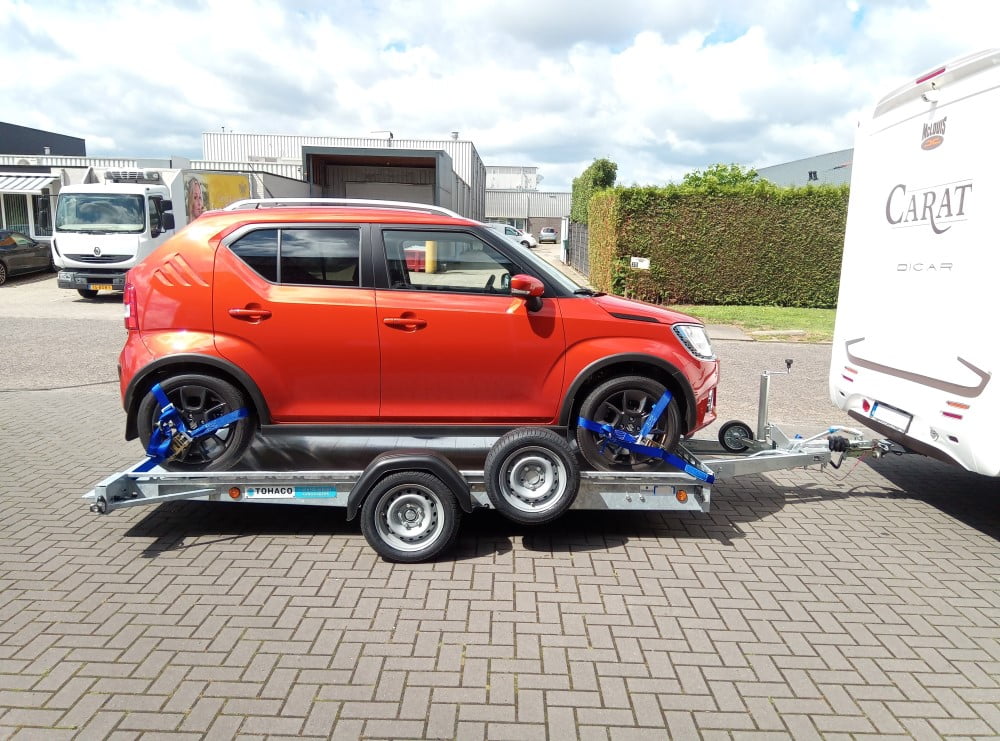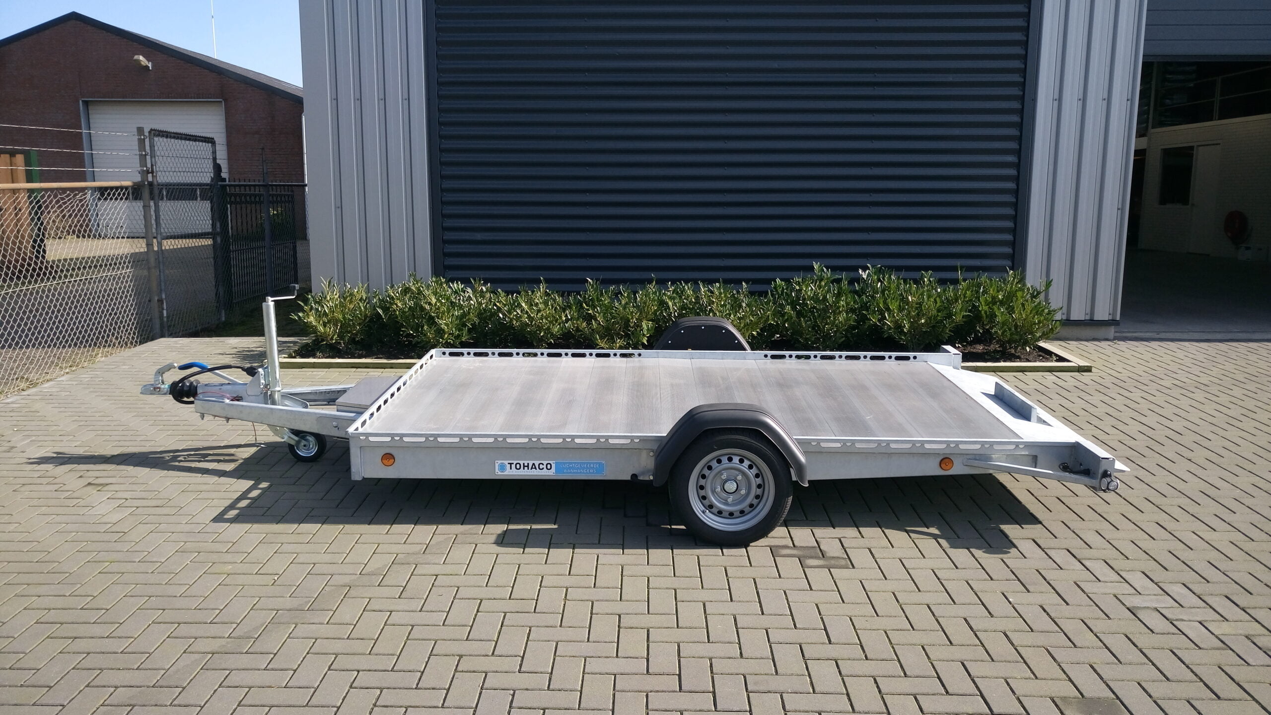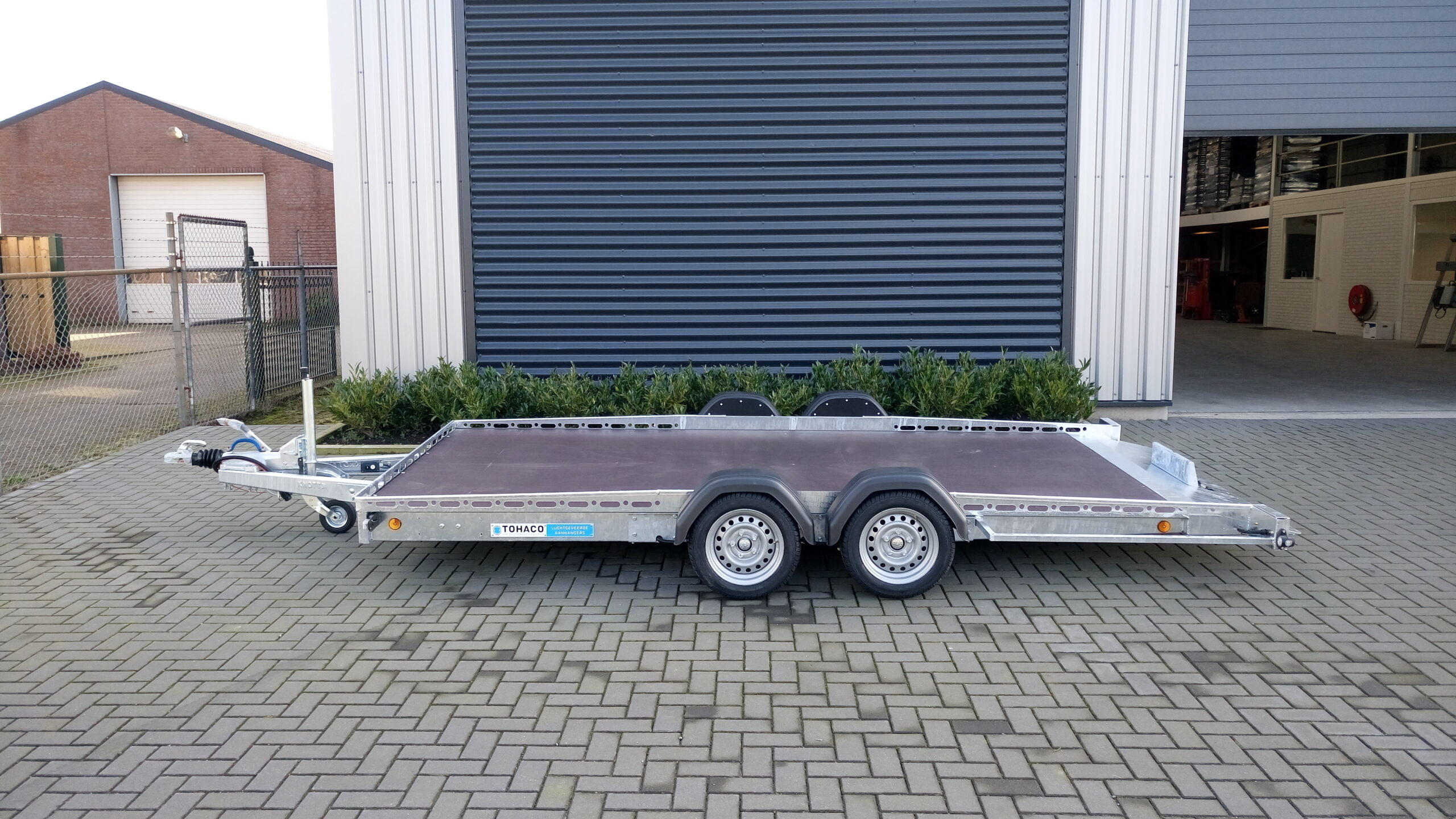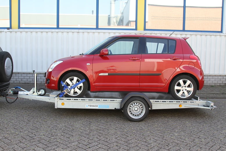Der Tohaco Autotransporter ist als einachsiger oder zweiachsiger Anhänger erhältlich. Die maximale Ladebreite des Autotransporters beträgt 200 cm! Sie brauchen keine Rampen mehr, denn dank der Luftfederung können Sie die Ladefläche einfach auf die Straße absenken. Dadurch wird das Auf- und Abfahren viel sicherer und das Klappern von Rampen während der Fahrt gehört der Vergangenheit an. Und auch die körperliche Belastung durch die Arbeit mit Rampen entfällt.