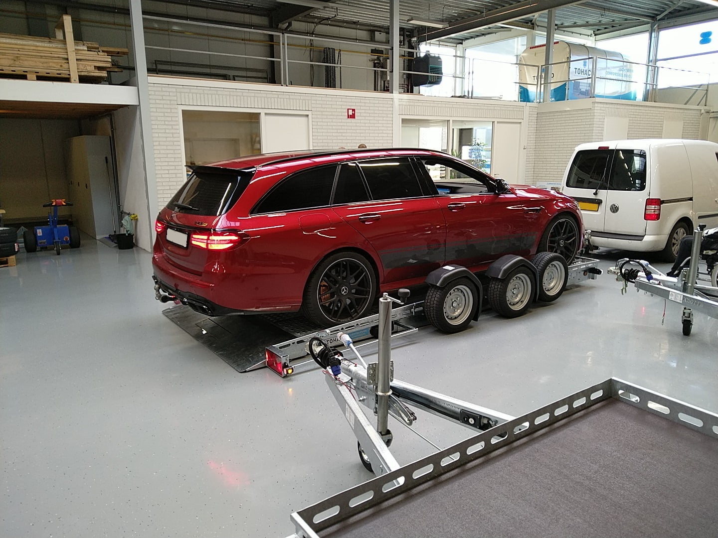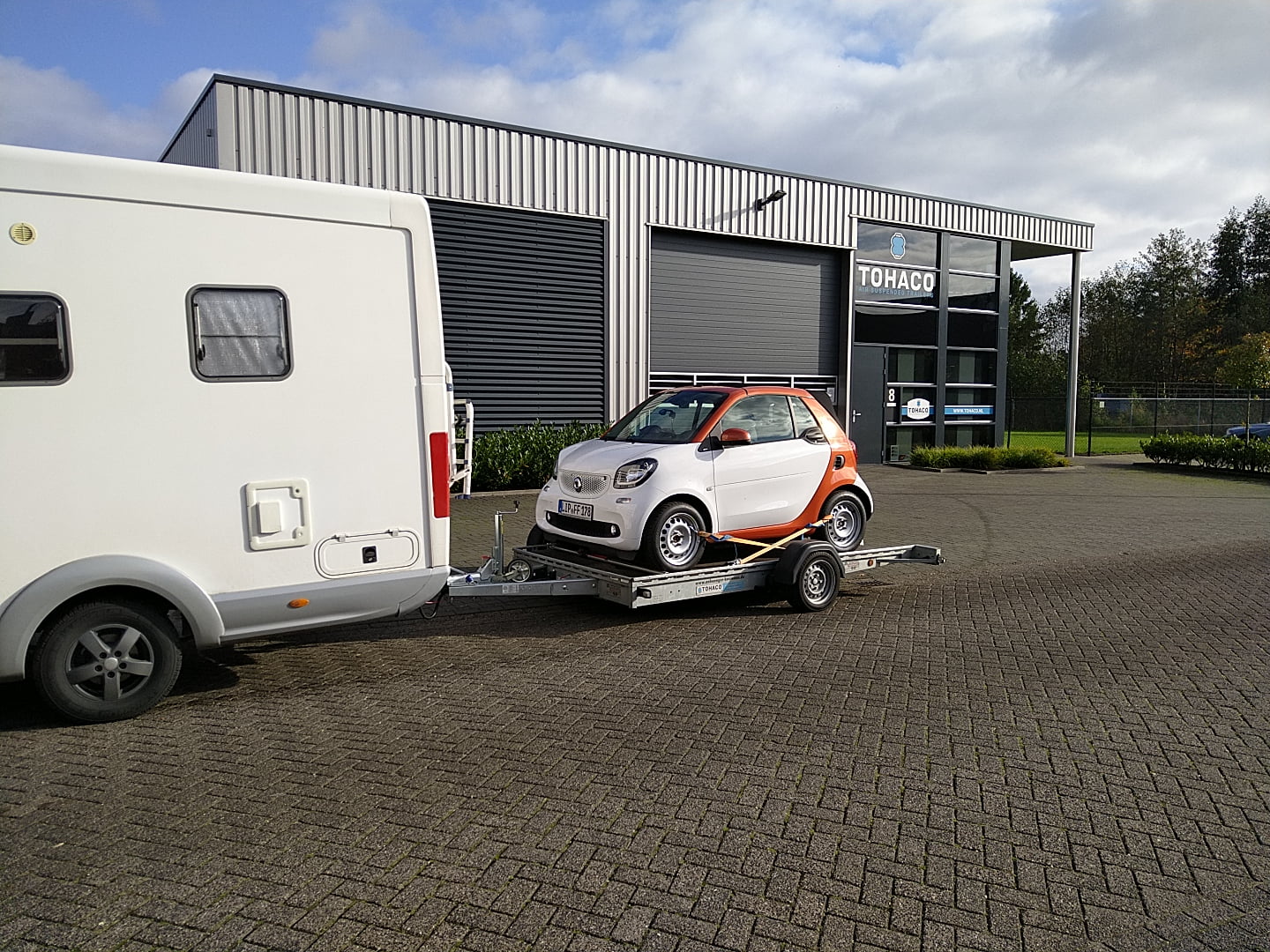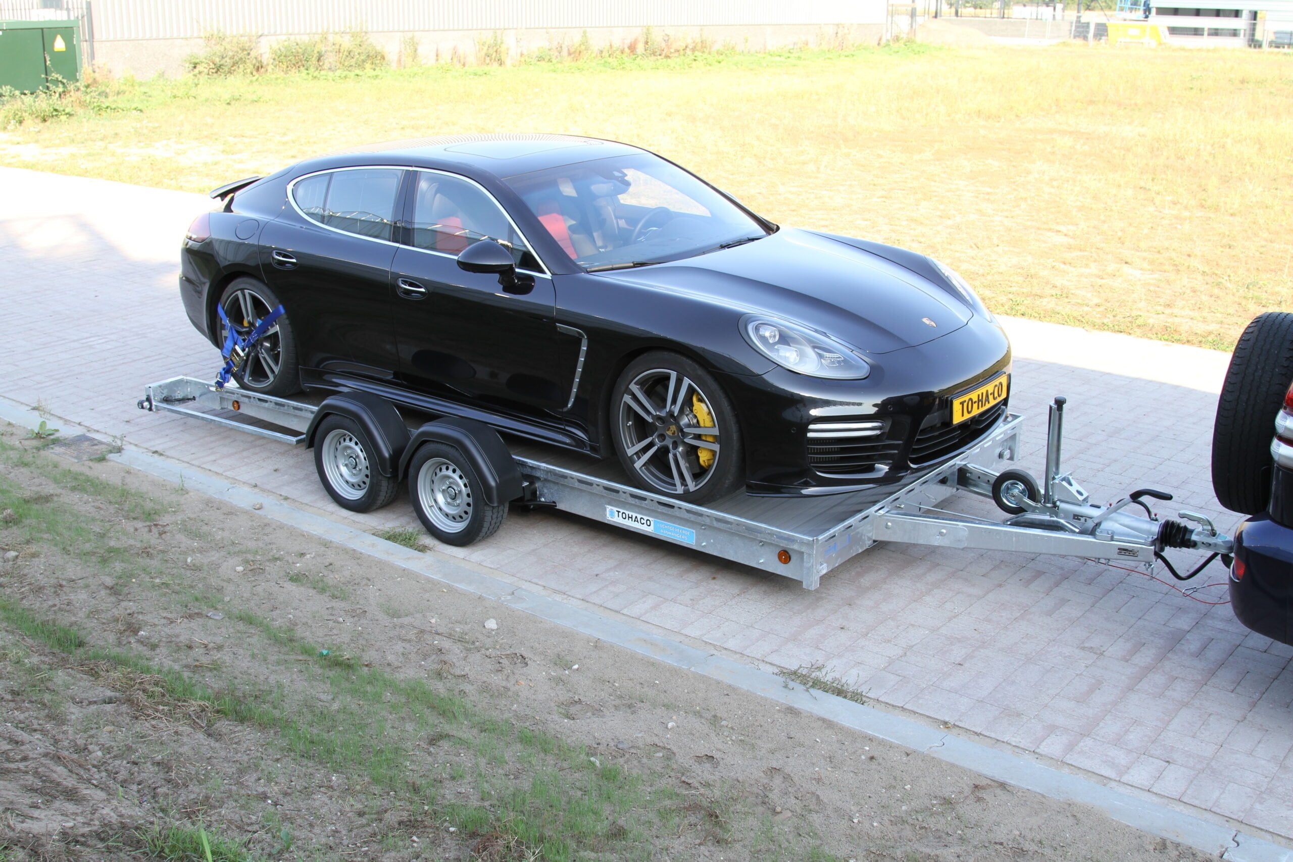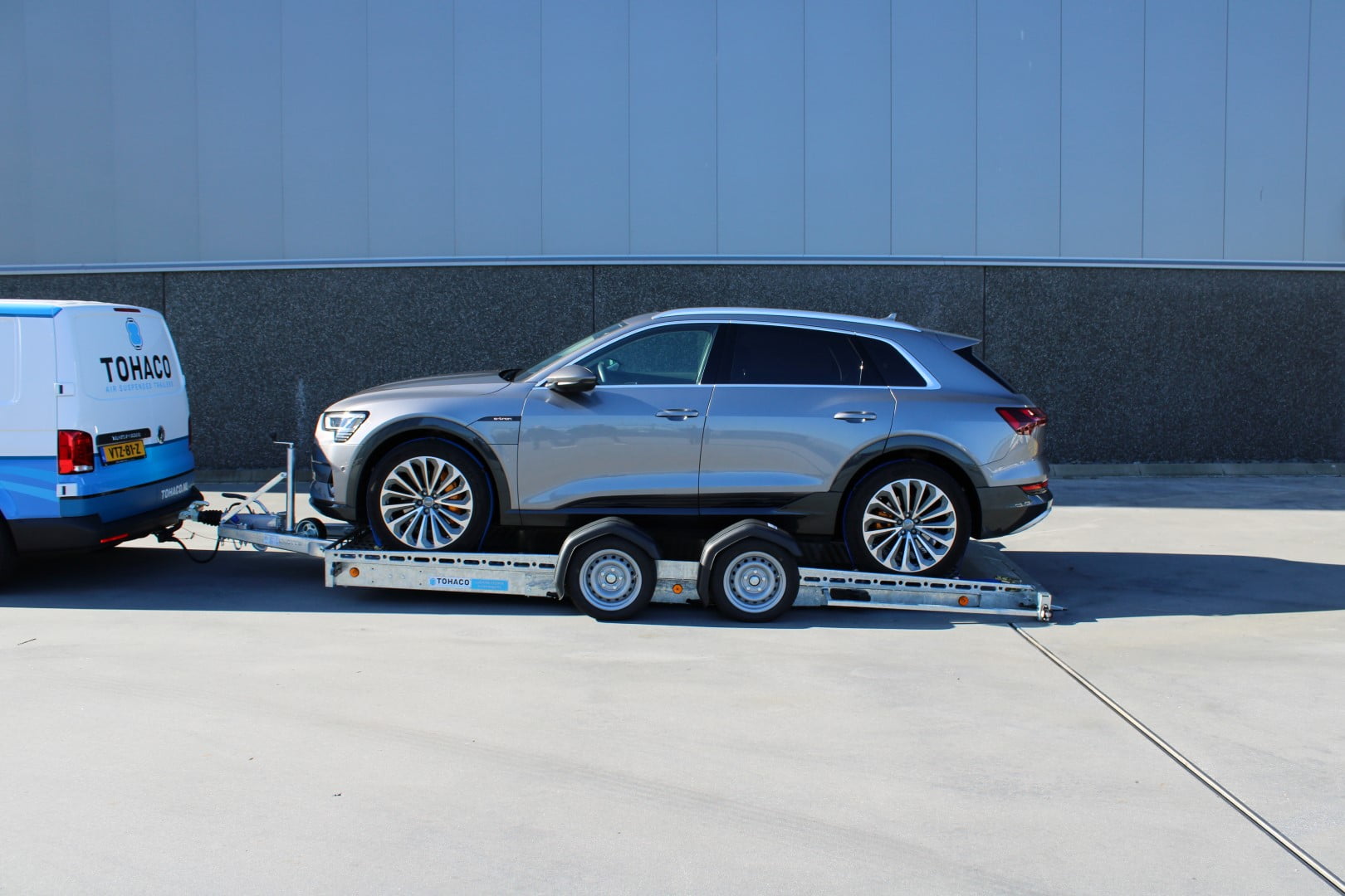 Der Tohaco Autotransporter ist als einachsiger oder zweiachsiger Anhänger erhältlich. Die maximale Ladebreite des Autotransporters beträgt 200 cm! Sie brauchen keine Rampen mehr, denn dank der Luftfederung können Sie die Ladefläche einfach auf die Straße absenken. Dadurch wird das Auf- und Abfahren viel sicherer und das Klappern von Rampen während der Fahrt gehört der Vergangenheit an. Und auch die körperliche Belastung durch die Arbeit mit Rampen entfällt.
