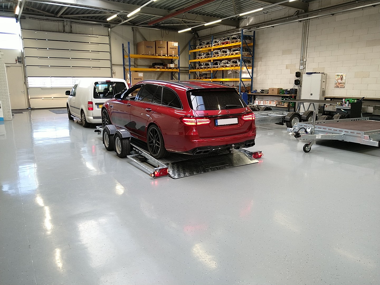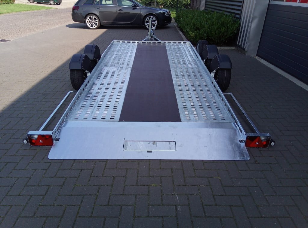 Mehr InformationenDieser Autotransporter ist speziell für den Transport von Autos gebaut und optimiert. Da der Anhänger mit einer Luftfederung ausgestattet ist, kann der Ladeboden am Heck an der Rampe vollständig auf die Straßenoberfläche abgesenkt werden. Dadurch entsteht ein sehr niedriger Rampenwinkel, so dass Sie praktisch jedes Auto problemlos und vor allem sicher auf den Anhänger auf- und abfahren können. Selbst tiefergelegte Sportwagen mit einer sehr geringen Bodenfreiheit.