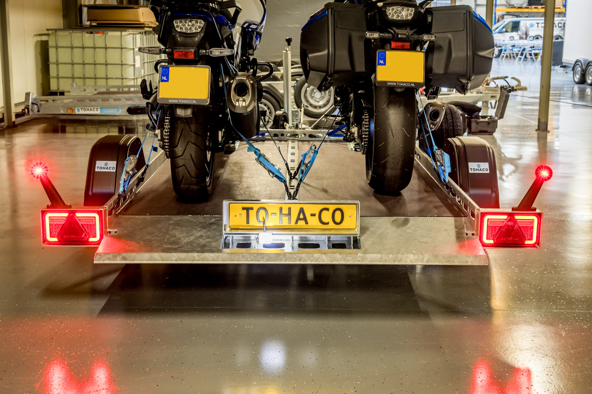 Bei Tohaco steht Stabilität im Mittelpunkt. Dank der Luftfederung bleibt der Anhänger stabil auf der Straße, sodass Ihre Ladung ruhiger bleibt und besser gesichert ist. Ob Motorrad, Auto oder Maschine: Mit einem Tohaco-Anhänger transportieren Sie alles sicher, bequem und sorgenfrei.