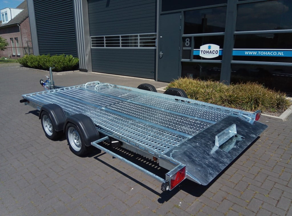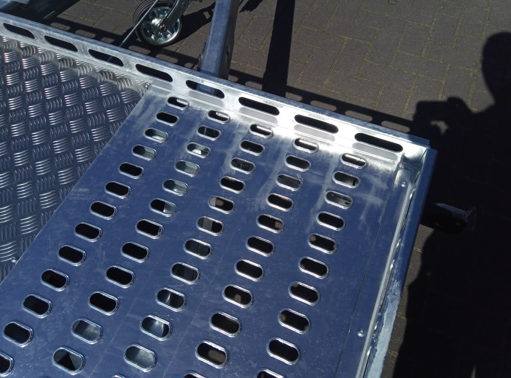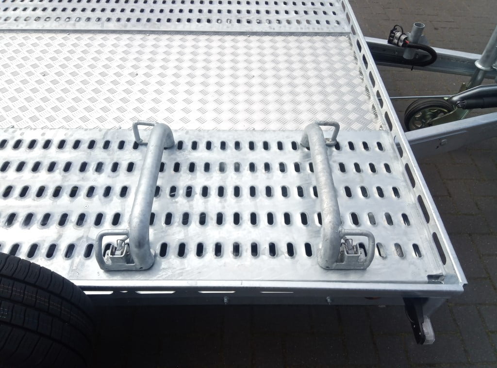 Mehr InformationenSpeziell für den Autotransport können wir Ihren Tohaco-Anhänger mit einem gelochten Boden aus 3 mm verzinktem Stahlblech ausstatten. Radstopper und Zurrgurte können in die Perforationen eingehängt werden. Alle perforierten Löcher des Anhängers können genutzt werden.