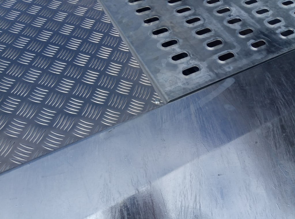 2 Streifen verzinktes Stahllochblech mit Aluminium-Tränenblech in der Mitte